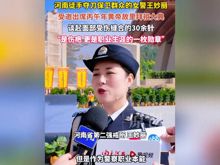 河南徒手夺刀保卫环球的女警王妙丽受邀出席丙午年黄帝故里拜祖大典,说念起面部受伤缝合的30余针,九游体育(NineGameSports)官网"是伤痕更是奇迹活命的一枚勋章"。