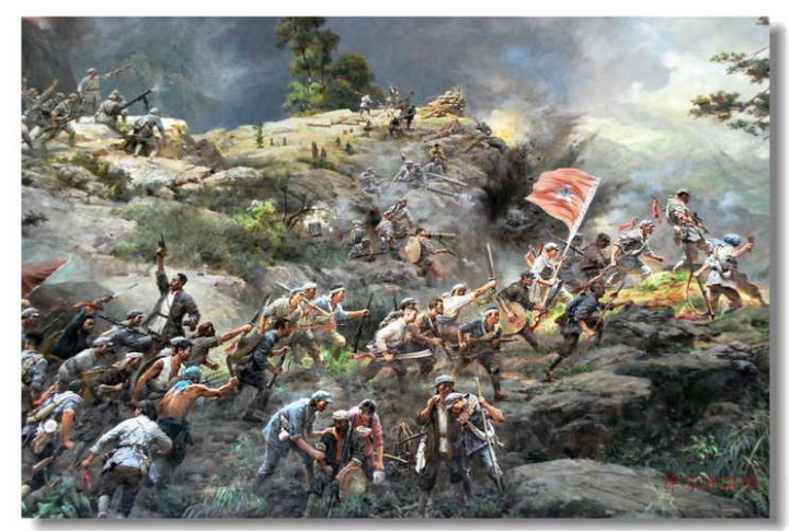 赤军杀敌冲锋号吹响起来,军民皆声喊叫。