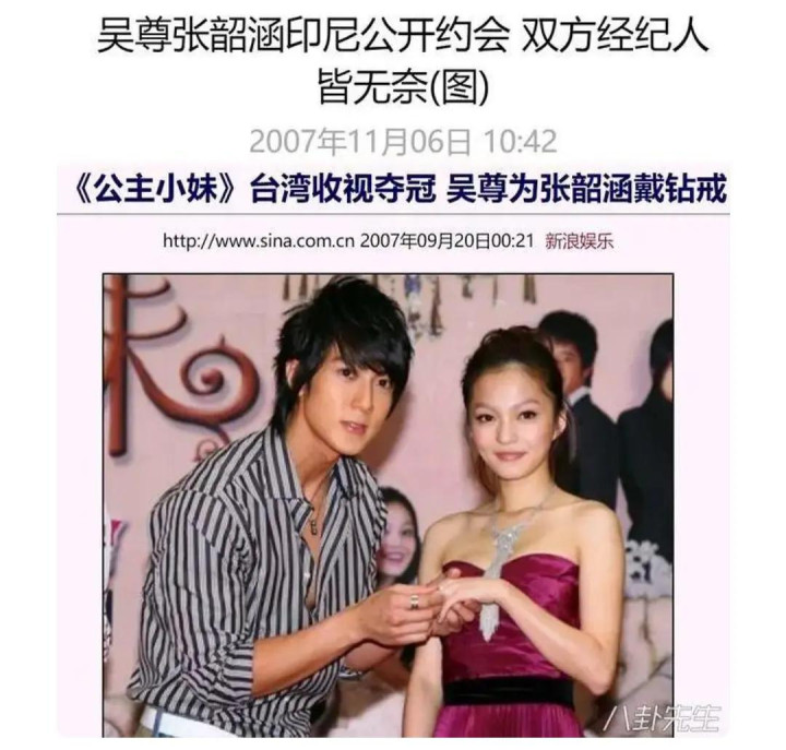 吴尊搭档林依晨主演《东方茱丽叶》,公司借助剧集热度,全力炒作尊晨CP,发布会上不时安排公主抱、借位吻、摸脸等亲密才能,吴尊公开表态林依晨是我方的理念念型,刻意营造含糊氛围;