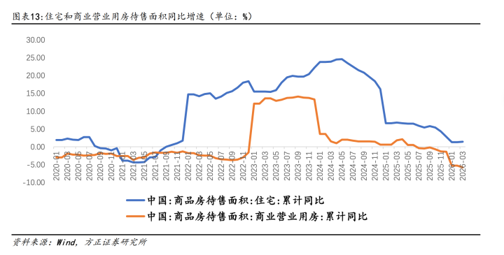 这亦然时隔多年,中央再度对房地产去库存淡薄要求。多措并举下,去库存的终结缓缓娇傲。Wind金融末端数据娇傲,寰球商品房待售面积的累计同比增幅在2024年5月达到15.8%的阶段性高位后参预收窄通谈,至2026年2月末,寰球商品房待售面积为79998万普通米,同比晋升幅度仅0.13%。