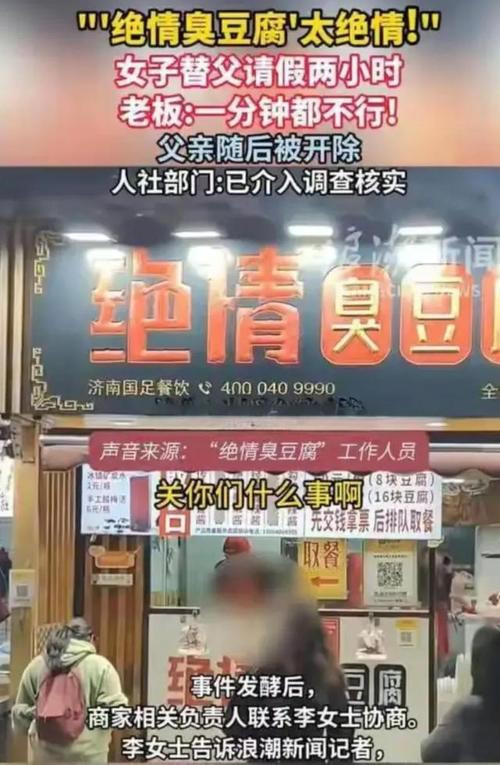 2月28日,激发全网热议的济南“绝情臭豆腐”职工请假被开除事件迎来追究完了。涉事店铺公建筑布谈歉声明,直面自身管束舛错,接事工因儿子代请两小时假遭开除一事赤诚致歉。当今两边已按照N+1表率达成妥协,涉事职工全额拿到抵偿款,家属更是心胸善意,将部分抵偿款项捐赠至公益职业,让这场充满争议的劳资纠纷,最终以感性妥协与暖热完了。 {jz:field.toptypename/} 事件缘发祥于春节时期的一次寻常家庭筹商诉求。当事职工是店铺炸锅师父,通盘春节假期仅休息一天,与家东谈主相聚时候相配有限。其儿子...