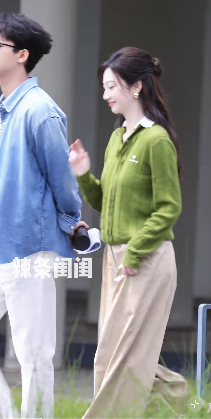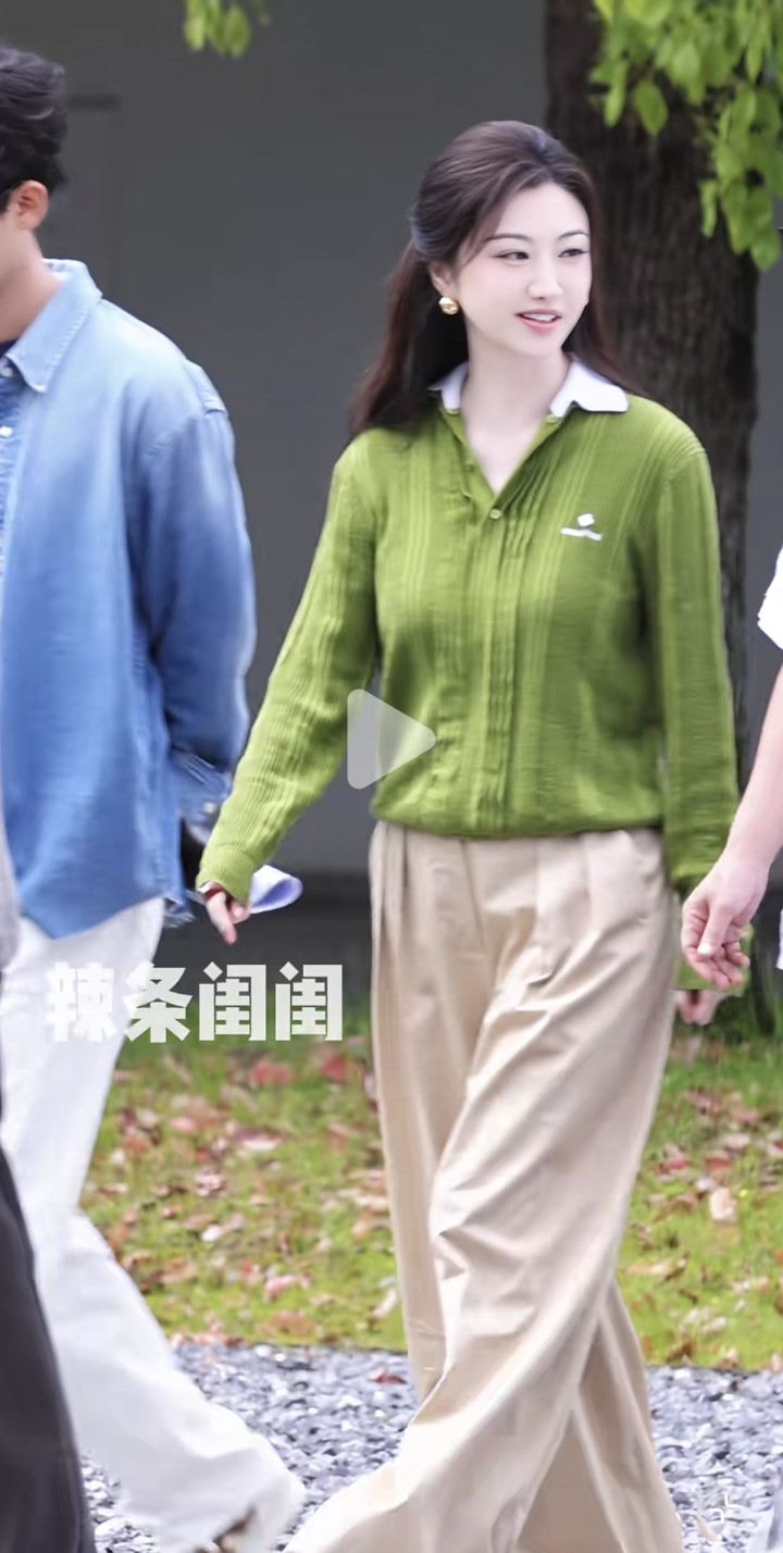 幸运彩app官方下载 明媚漂亮! 景甜录综艺路透, 穿绿色毛衣太好意思了, 好有气质白皎白嫩