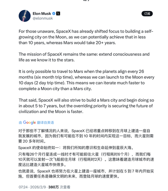 马斯克宣布重大变化:10 年内开始建设月球城市!推迟火星计划!