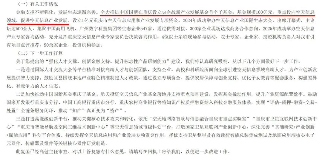 2025年12月15日,重庆市发改委官网刊登的【渝发改函〔2025〕1023号】文献暴露,全力股东中国国新要在重庆建立央企战新产业发展基金首个子基金,基金范畴100亿元,重心投向空天信息规模。