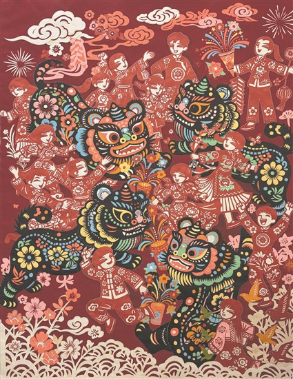 春辰舞狮喜盈门(农民画) 刘晓妍