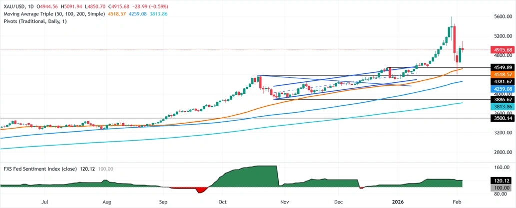 热门栏目 自选股 数据中心 行情中心 资金流向 模拟来回 客户端 著作起源:24K99 周三(2月4日),现货黄金价钱出现极为剧烈波动,金价在暴涨后大幅回落,日内一度转为下滑,最终收盘仅小幅高潮。有分析师指出,金价霸道位回落的主因是好意思元转强以及投资者赢利了结卖压。 金价发生了什么? 周三,亚洲来回时段,金价合手续攀升,欧市早盘,金价一度飙升至5091.97好意思元/盎司,创下日内高点。 随后金价漂泊下滑,参加纽约来回时段后,金价出现暴跌,一度波及4853.42好意思元/盎司,刷新日内低点。...