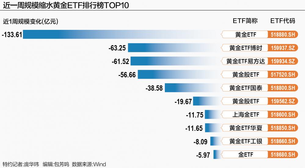 其中,因投资者净赎回导致的资金流出约66.03亿元,因金价下落导致净值缩水约360.80亿元。